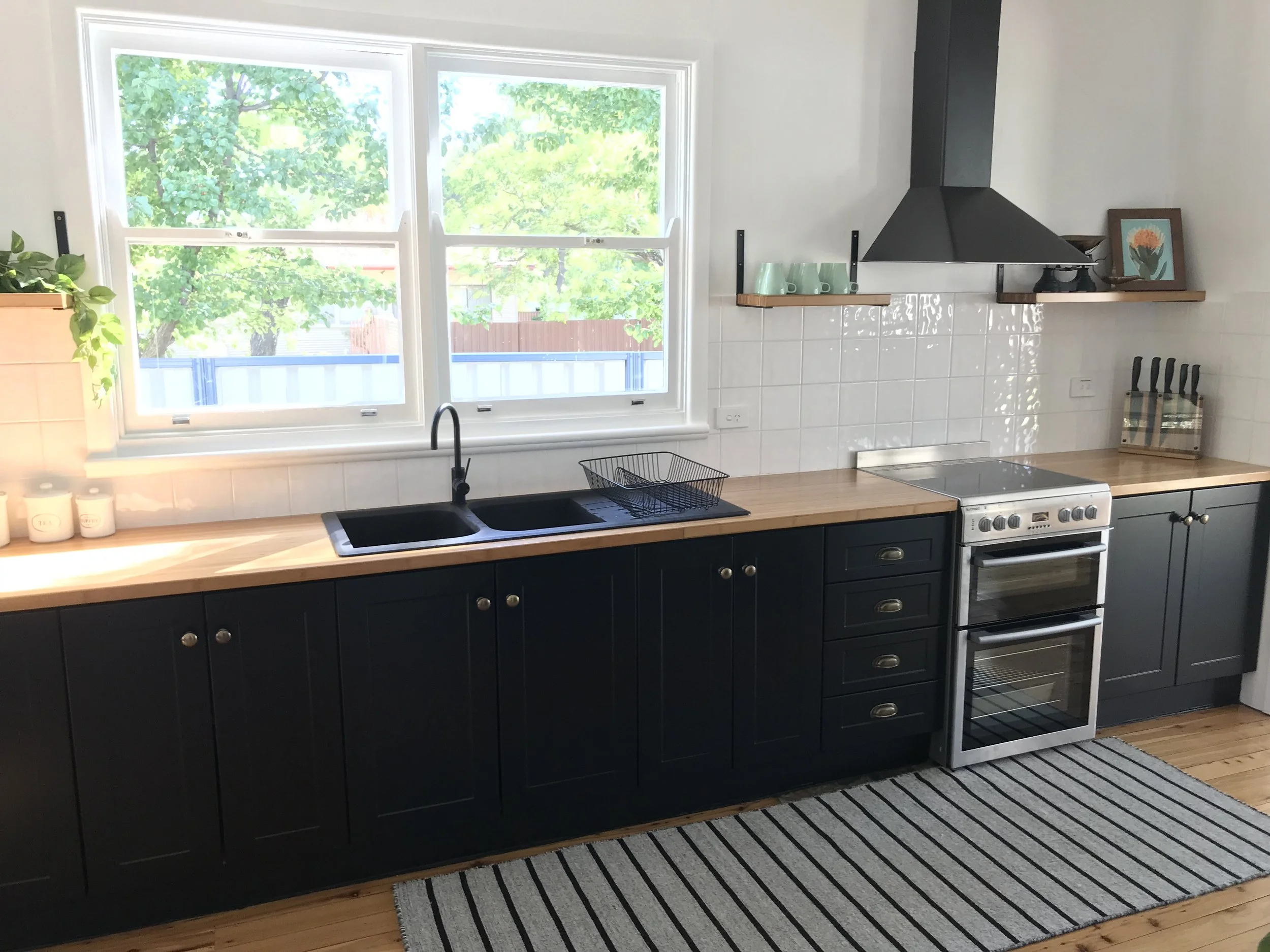 The Black Kitchen is a long galley kitchen stretched down the sunny north side of the cottage. Its generous space and location makes for easy entertaining or cooking for a crew.
