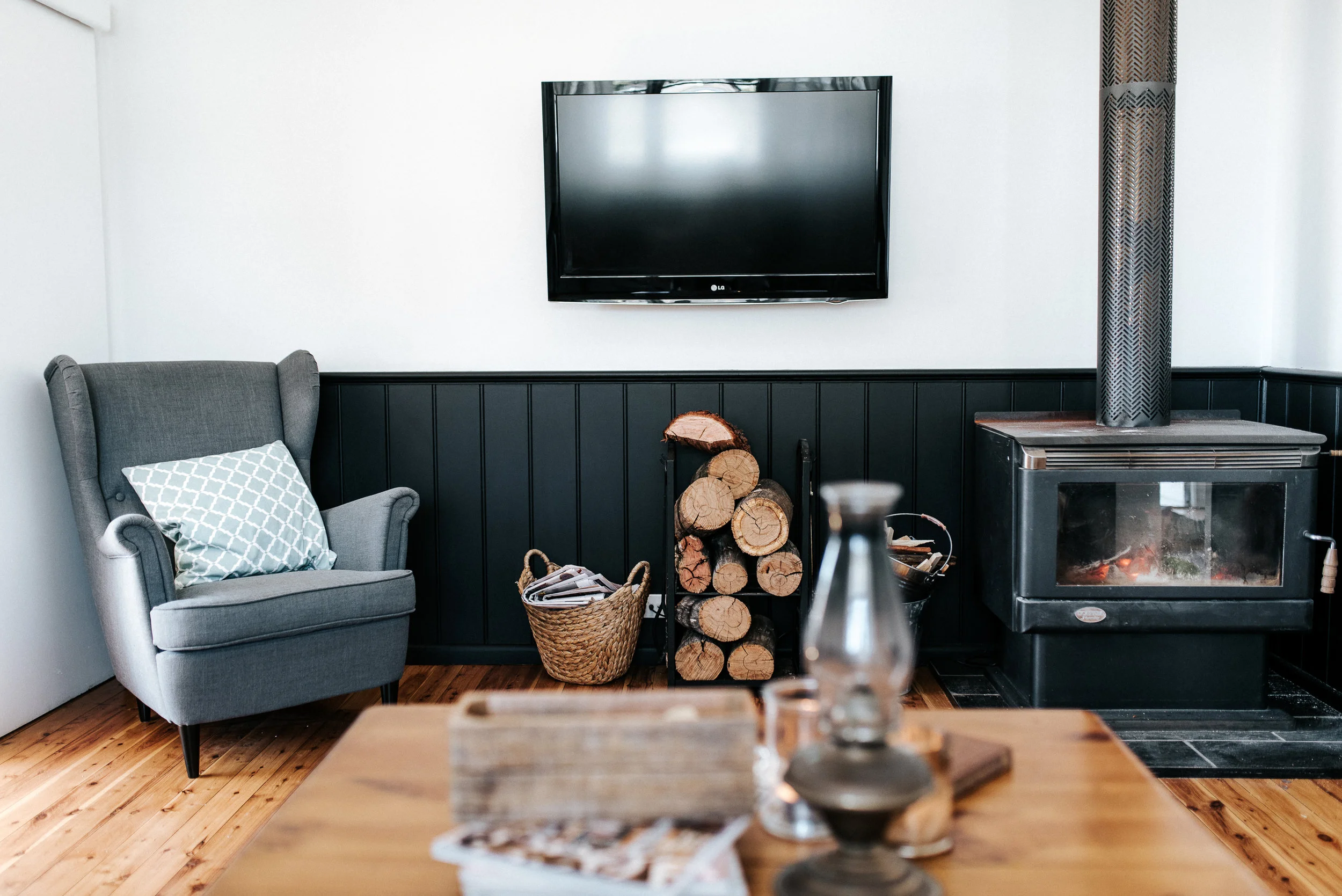 The lounge room is central to the cottage. The lounge room comfortably seats 6-8 adults, has a TV, coffee table stocked with games and a massive indoor fireplace. The perfect place to keep the kids entertained, or curl up with a red wine at the end of a long day exploring Mudgee.